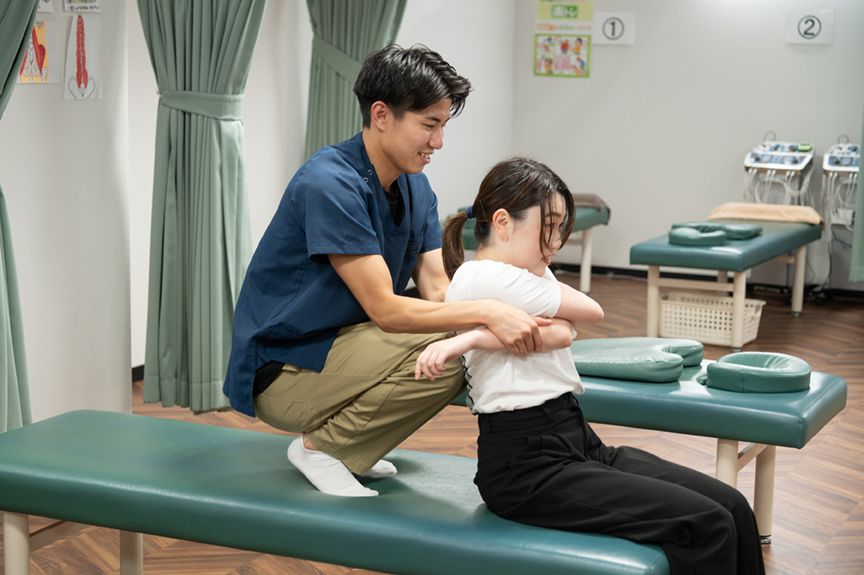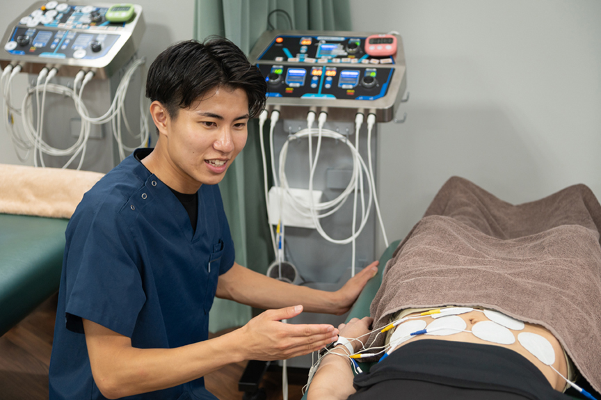 手動治療(マッサージなど)や道具を使った治療をしていきます。