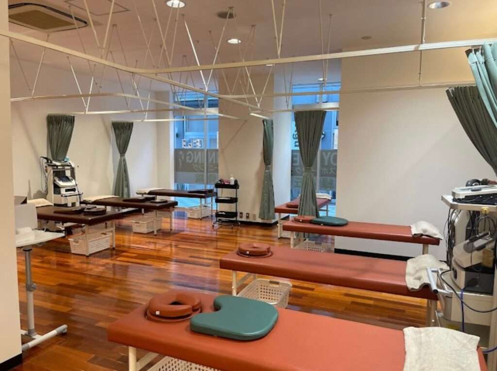 三島店は、接骨院とスポーツジムが一緒になったエントランスです。身体の健康管理に関心がある方々にとって理想的な場所となっています。健康に関連するサービスを一緒に利用することができ、より効率的に健康管理することができます。