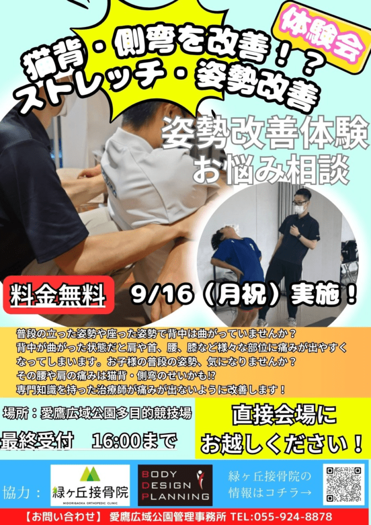 又、当日は痛み相談も弊社接骨院スタッフが常駐して実施していますのでイベントに参加しながら身体のご相談にお越し下さい。