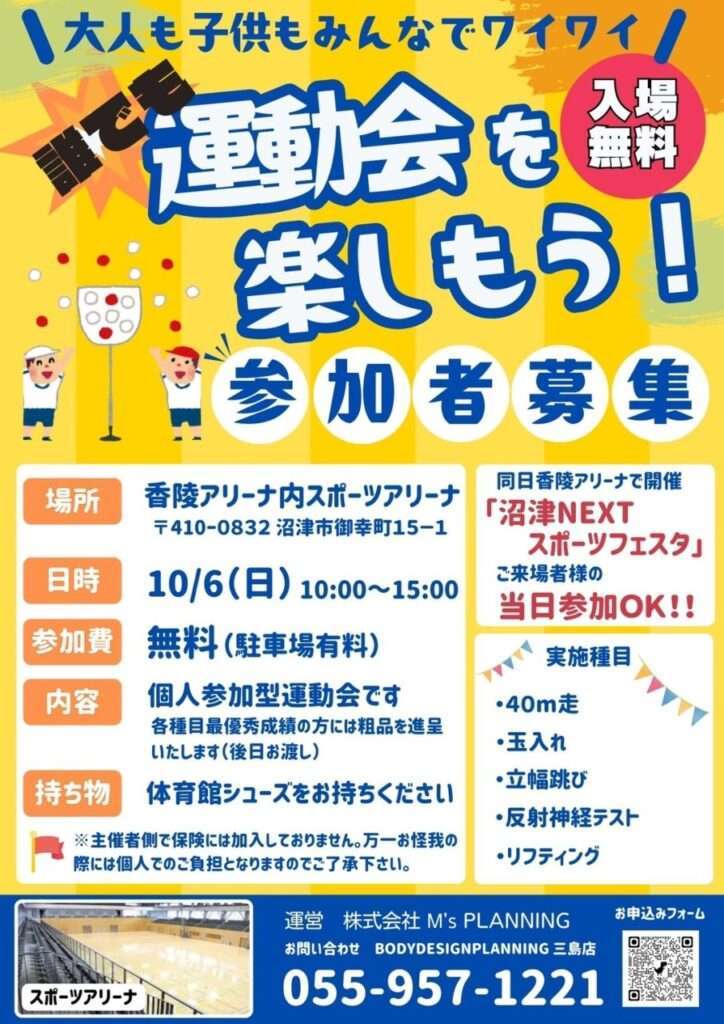香陵アリーナ(沼津総合体育館)で『誰でも運動会』を開催いたします!