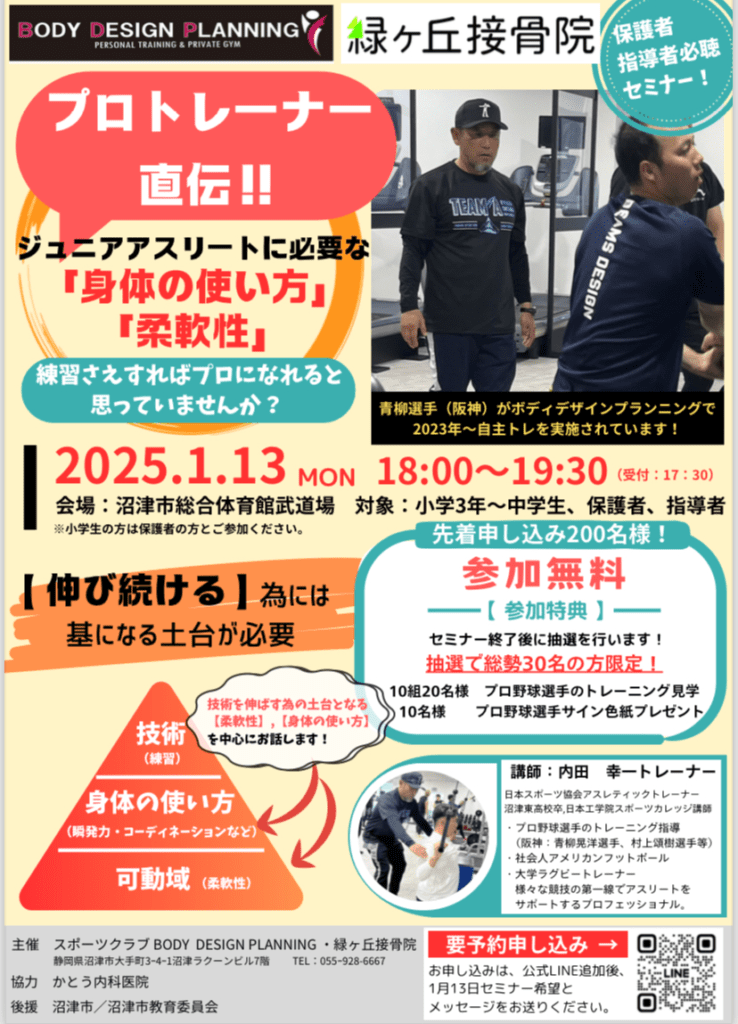 先日、ジュニアアスリートの為のセミナーについてご案内をさせて頂きました📅